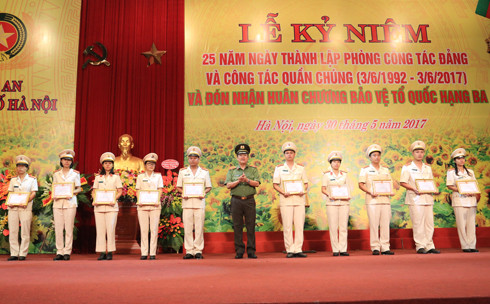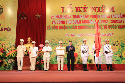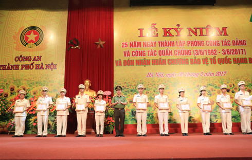 Ghi nhận những thành tích trong 25 năm qua của Phòng Công tác Đảng và công tác quần chúng Công an Hà Nội, Chủ tịch nước đã tặng thưởng Huân chương Bảo vệ Tổ quốc hạng Ba. Tại buổi lễ, thừa ủy quyền của Chủ tịch nước, ông Lê Hồng Sơn, Phó Chủ tịch UBND TP đã gắn Huân chương Bảo vệ Tổ quốc hạng Ba lên lá cờ truyền thống của Phòng Công tác Đảng và công tác quần chúng.