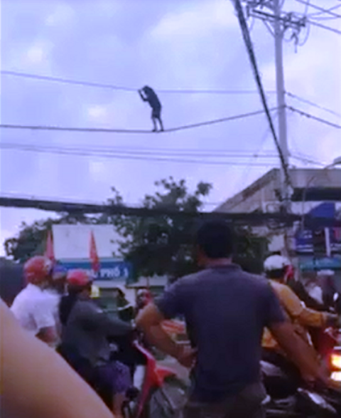 Theo đó, sáng 17/4, người dân sinh sống trên đường Hà Huy Giáp, đoạn thuộc phường Thạnh Lộc, quận 12, TP.HCM, phát hiện nam thanh niên lạ mặt, có biểu hiện giống “ngáo đá” leo lên dây điện trước địa chỉ 592A. Mọi người thấy nam thanh niên này liên tục cầm dây điện, đánh đu qua lại, la ó khiến người đi đường khiếp sợ, bất an.