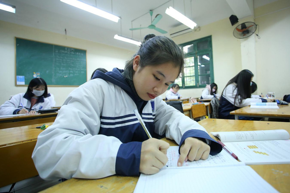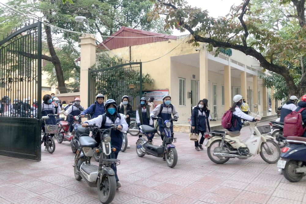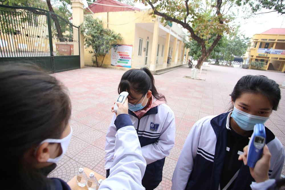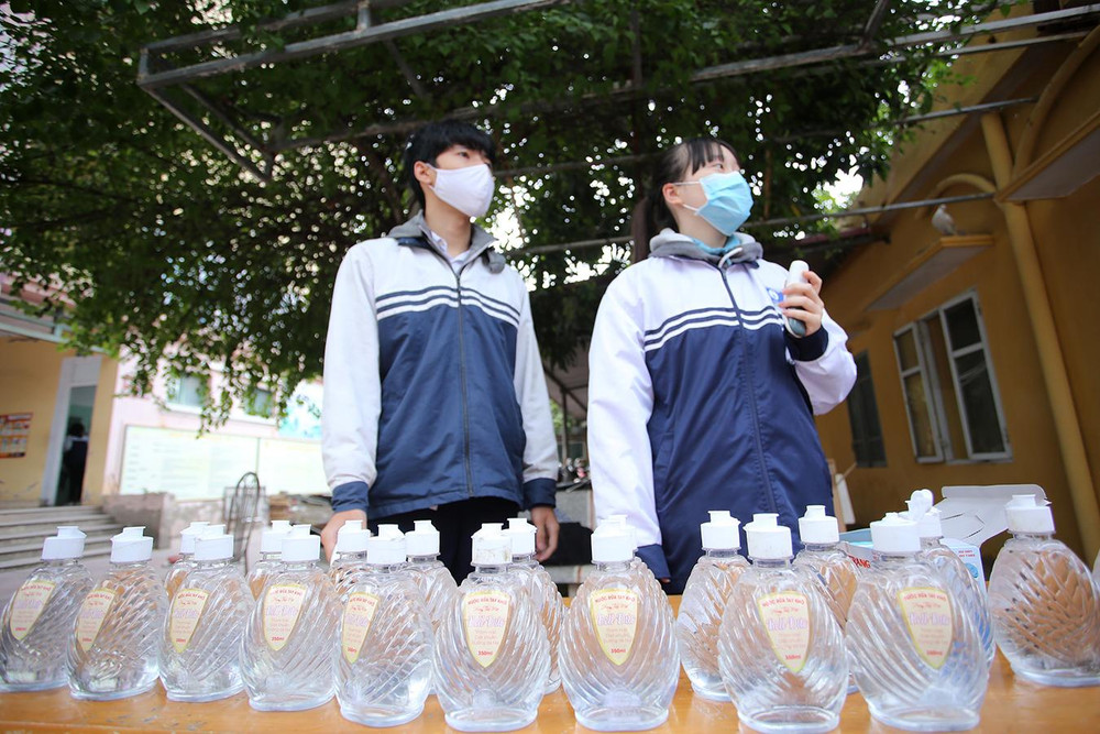 ANTD.VN - Thực hiện nghiêm các biện pháp phòng, chống dịch Covid-19 trong trường học, trường THPT Nguyễn Thị Minh Khai (quận Bắc Từ Liêm, Hà Nội) tăng cường triển khai công tác đảm bảo an toàn trước những diễn biến khó lường của dịch bệnh này. Đặc biệt, Ban Giám hiệu nhà trường áp dụng công tác thực hiện phòng, chống dịch qua “Thông điệp 5K”: Khẩu trang - Khử khuẩn - Khoảng cách - Không tập trung - Khai báo y tế để đánh giá thi đua giữa các lớp học.