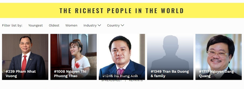 Những tỷ phú Việt Nam trong Bảng xếp hạng Forbes