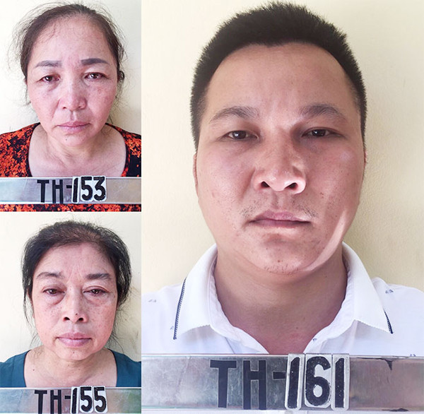 Các đối tượng gồm Lương Văn Nhâm (SN 1982), trú tại huyện Hương Sơn, Vũ Thị Hà (SN 1967), Đinh Thị Thọ (SN 1953), cùng trú tại thị xã Thía Hòa; Hồ Thị Trường (SN 1965), Lê Mai Phương Anh (SN 1995), Nguyễn Văn Hùng (SN 1978), Hoàng Thị Liên (SN 1963), Võ Thị Hải (SN 1965), Nguyễn Văn Tiến (SN 1993), Nguyễn Đức Hùng (SN 1987), đều trú tại thị xã Thái Hòa.