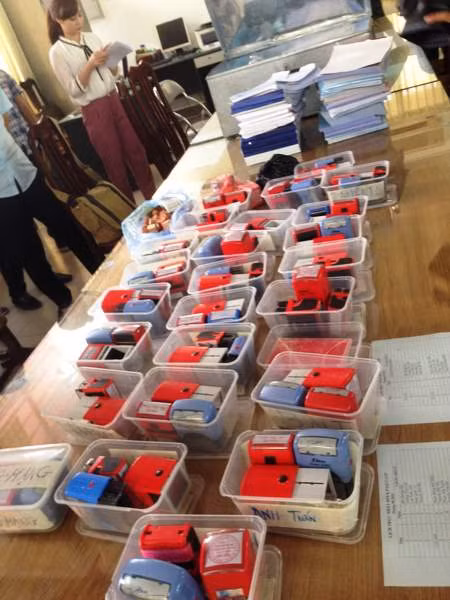 Hàng chục bộ con dấu pháp nhân công ty "chết yểu" được Hằng mua lại cùng với hàng trăm quyển hóa đơn trong vụ án đã bị cơ quan điều tra thu giữ