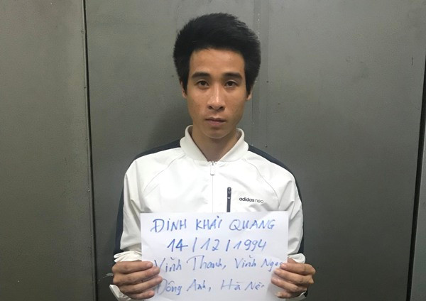 Một tuần trước đó, Cơ quan CSĐT - CAH Sóc Sơn đã quyết định tạm giữ hình sự Đinh Khải Quang (SN 1994, trú tại xã Vĩnh Ngọc, huyện Đông Anh, Hà Nội) và Nguyễn Văn Tuấn (SN 1994), Nguyễn Thành Trung (SN 1988), đều trú tại xã Vĩnh Ngọc, huyện Đông Anh để điều tra làm rõ hành vi lừa đảo chiếm đoạt tài sản.