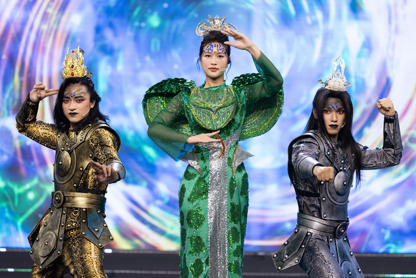 | Trong vai Hằng Nga, Hoa hậu Lê Hoàng Phương một lần nữa cho thấy tinh thần nhiệt huyết, hết mình trên sân khấu |