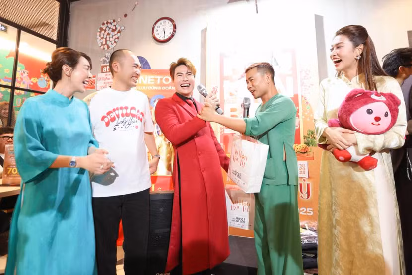 | Tiến Luật tự tay bê quà đến tặng khán giả |