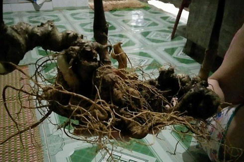 Ông Thuật cho biết, cây sâm này được bố ông đem từ rừng về trồng trong vườn của gia đình từ rất lâu. Sau nhiều năm chăm sóc, nay thấy củ sâm đã lớn, sâm lại đang có giá cao nên ông Thuật quyết định đào lên để bán.