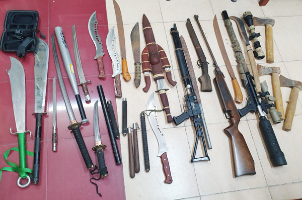 Trong ổ nhóm này, Lê Xuân Minh và Nguyễn Trọng Tưởng là những đối tượng đã có tiền án. Tại cửa hàng cầm đồ của Tưởng, Cơ quan công an đã thu giữ 2 bao tải vũ khí và hung khí nguy hiểm, trong đó có 4 khẩu súng dạng súng thể thao, súng săn các loại và một số viên đạn. Ngoài ra còn có rìu, dao quắm, kiếm, đao các loại, côn nhị khúc, gậy bóng chày...