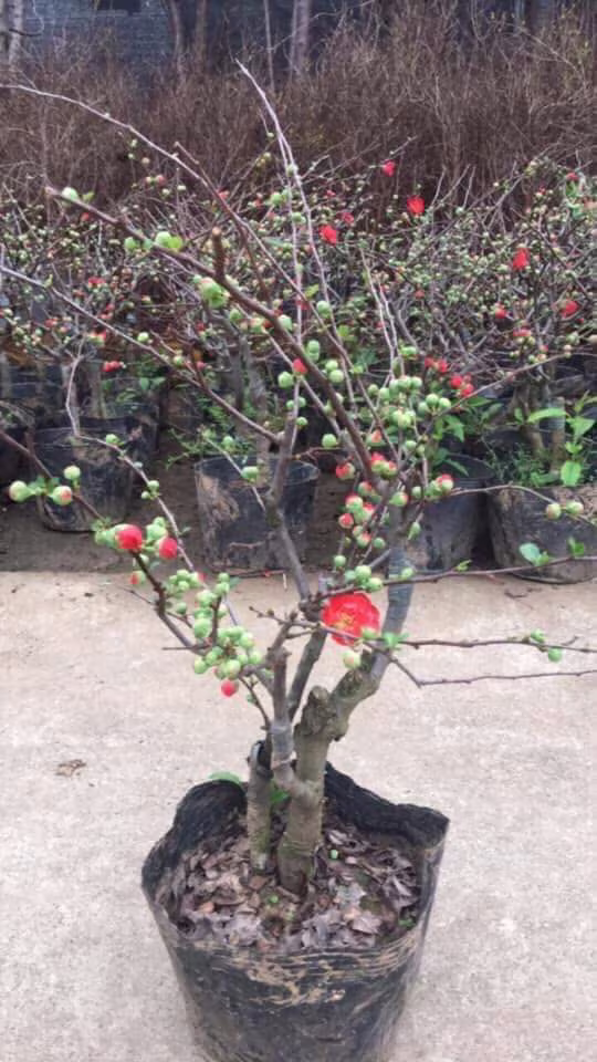 Ngoài các loại hoa cảnh trên, Tết năm nay nhiều người thích “chơi” cây mai đỏ. Chị Nguyễn Thu Hoài (người kinh doanh hoa cảnh Tết online) cho biết: “Mai đỏ mang may mắn đến với gia đình trong năm mới. Cây nhỏ nên có thể để trong nhà, thềm nhà hoặc ban thờ. Hoa bền lâu, được khoảng 2 tháng nên nhiều người rất thích”. Giá bán chậu mai nhỏ, cao khoảng 60cm là 400 nghìn đồng.