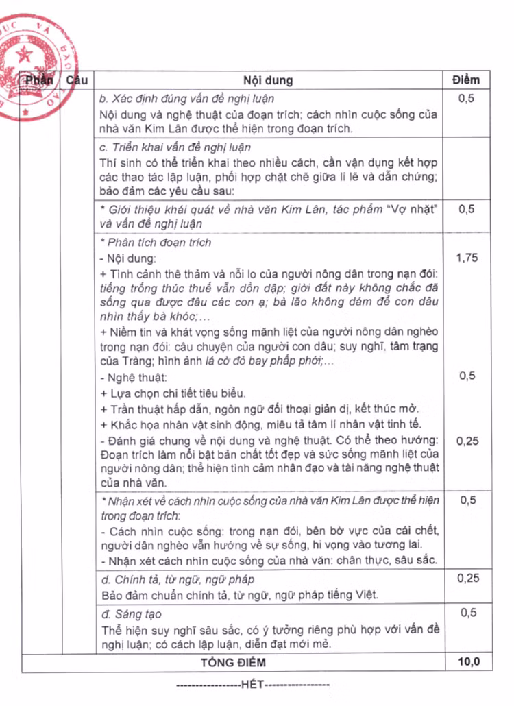 Hai ngày sau khi kết thúc kỳ thi tốt nghiệp THPT 2023, Bộ GD-ĐT Đã chính thức công bố đáp án và thang điểm chi tiết môn ngữ văn.