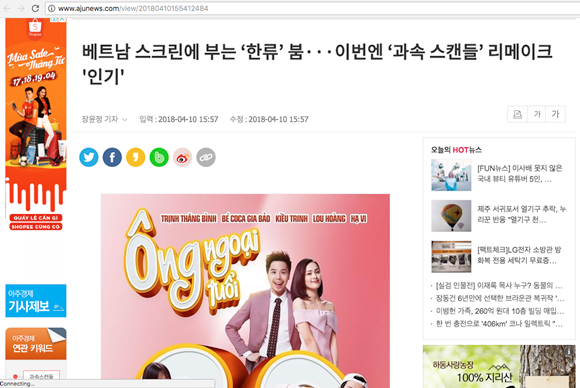 Bộ phim "Ông ngoại tuổi 30" giới thiệu trên trang ajunews.com của Hàn Quốc