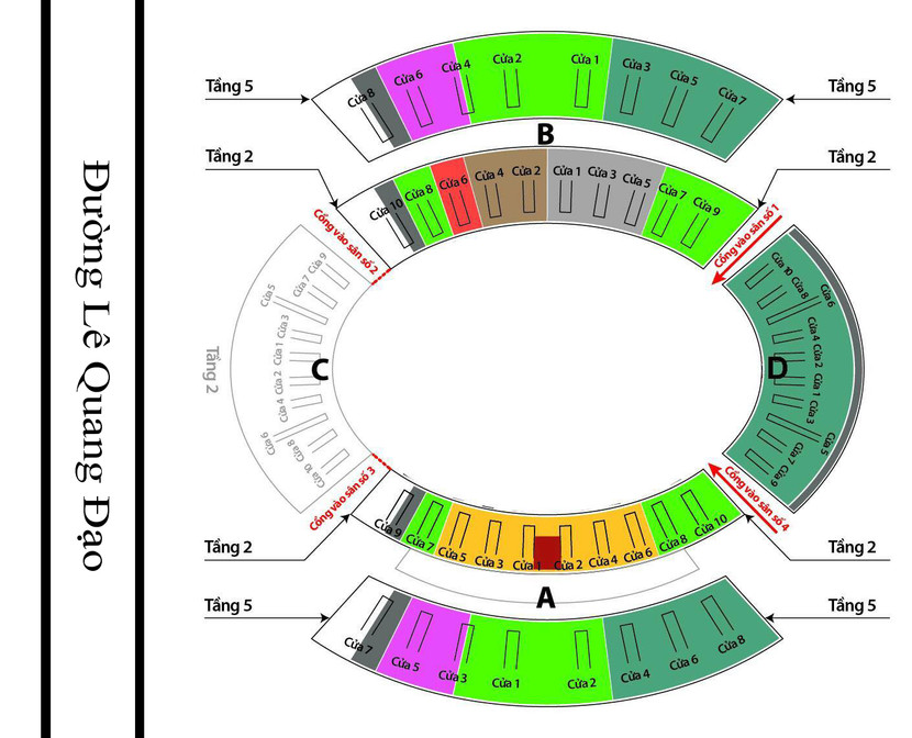 Sơ đồ lối vào các cửa khán đài sân Mỹ Đình