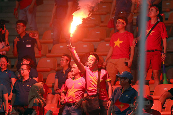 Mới đây tại ASIAD 2018, việc một CĐV Việt Nam đốt pháo sáng trên khán đài Indonesia cũng khiến VFF bị AFC phạt 12.500 USD, kèm theo cảnh báo nâng mức phạt và cân nhắc "treo sân" nếu CĐV Việt Nam còn tái phạm hành vi này.