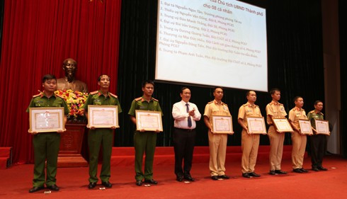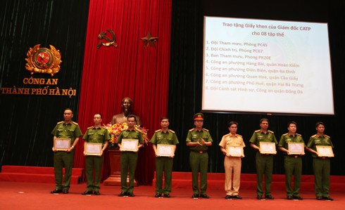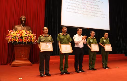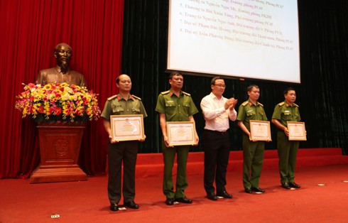 Đại tá Đào Thanh Hải, Phó Giám đốc CATP Hà Nội trao Giấy khen của Giám đốc CATP Hà Nội cho các tập thể, cá nhân có thành tích trong quá trình tham gia công tác 141
