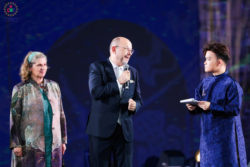 Đạo diễn Hoàng Công Cường chia sẻ, sự kiện "Lễ hội Văn hóa thế giới năm 2025" lần đầu tiên được tổ chức tại Hà Nội quy tụ 48 quốc gia - nơi hội tụ rất nhiều câu chuyện tại Hoàng Thành Thăng Long để quảng bá văn hoá các nước. Đêm khai mạc với phần trình diễn mãn nhãn đã giới thiệu di sản văn hoá của Việt Nam ra thế giới. Bên cạnh đó có sự kết hợp của các nghệ sĩ quốc tế trong “Bước chân di sản’’ mang tới cho khán giả không khí tự hào. Qua lễ hội lần này, khán giả quốc tế hiểu về hành trình văn hoá, lịch sử của Việt Nam và nơi đây sẽ là địa chỉ du lịch để bạn bè quốc tế tìm đến và khám phá.