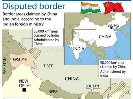 Bản đồ các khu vực tranh chấp giữa Ấn Độ và Trung Quốc