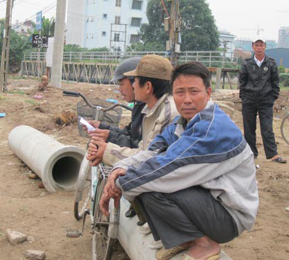 Hôm 16-2, hơn chục người lao động đến từ Nam Định, Thái Bình, Hưng Yên đứng ngồi chờ việc ở cầu vượt Phạm Hùng – Phạm Văn Đồng suốt từ đầu giờ sáng mà không có người thuê. Đến khoảng 11h trưa khi có người đàn ông trung tuổi đến thuê việc thì cả đám người ùa ra hỏi toán loạn, thế nhưng người thuê chỉ cần một người phụ giúp mấy ông thợ xây sửa bể phốt trong nhà với mức tiền 80 nghìn đồng/ ngày.