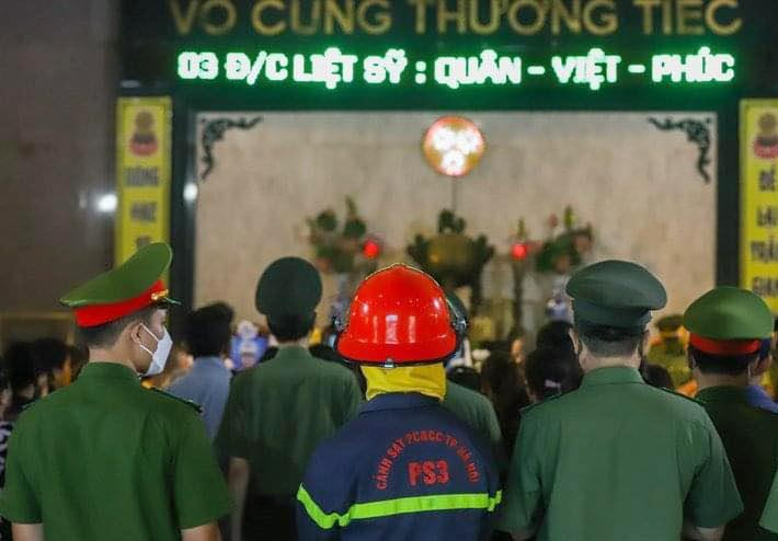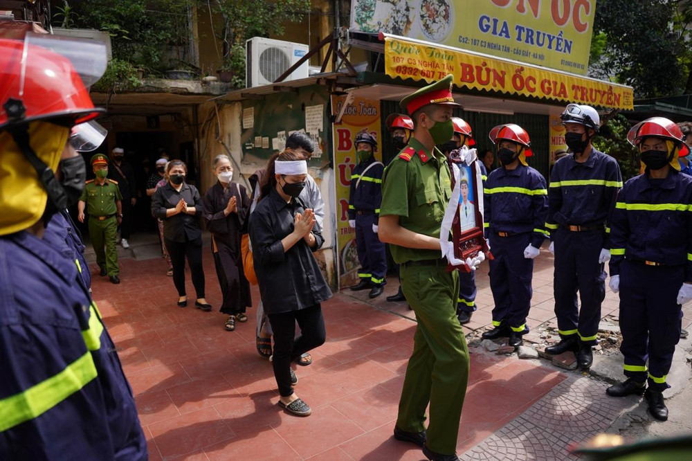 ANTD.VN - Sáng 5-8, CATP Hà Nội đã trang trọng tổ chức lễ tang 3 liệt sỹ cán bộ Cảnh sát PCCC&CNCH - CAQ Cầu Giấy hy sinh trong khi làm nhiệm vụ cứu nạn tại đám cháy xảy ra ngày 1-8 tại quán karaoke ở phố Quan Hoa.