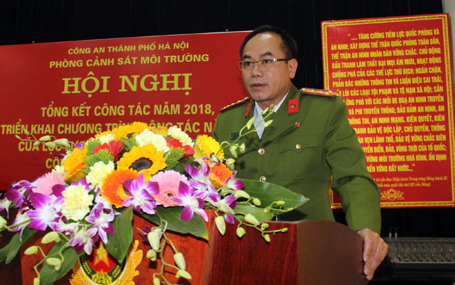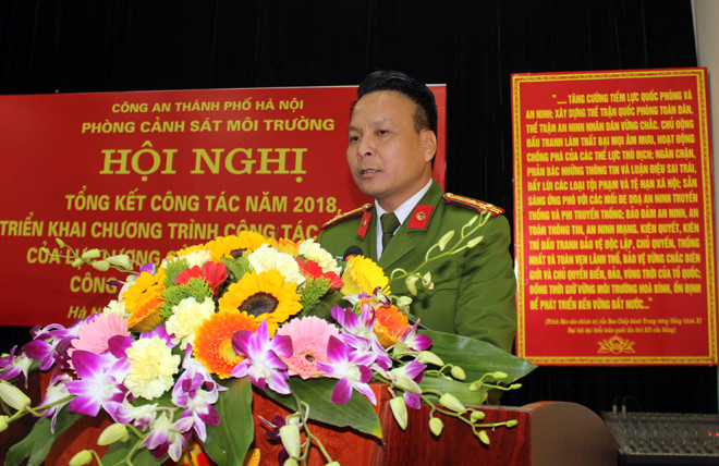 Phát biểu tại hội nghị, Đại tá Nguyễn Thanh Tùng, Phó giám đốc CATP đã ghi nhận và nhiệt liệt biểu dương những thành tích mà CBCS Phòng Cảnh sát môi trường CATP đã đạt được trong năm 2018.
