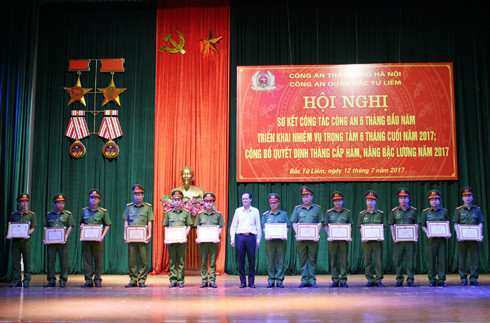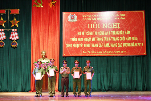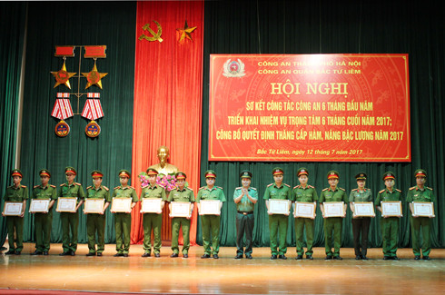 Cũng tại hội nghị, CAQ Bắc Từ Liêm đã tổ chức công bố và trao quyết định nâng lương, thăng cấp bậc hàm cho 158 CBCS; trao phần thưởng cao quý của Nhà nước, Bộ Công an, UBND TP, CATP, UBND quận Bắc Từ Liêm cho các tập thể, cá nhân đang công tác tại CAQ Bắc Từ Liêm.