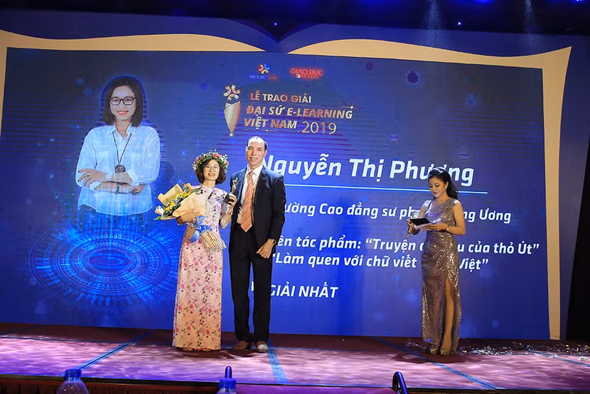 Vượt qua gần 2.300 bài dự thi của các thí sinh đến từ khắp ba miền đất nước, cô Nguyễn Thị Phương – giáo viên trường Cao đẳng Sư phạm Trung ương Hà Nội - đã xuất sắc trở thành Đại sứ E-Learning Việt Nam 2019 với tác phẩm “Truyện cây rau của Thỏ Út”, “Làm quen chữ viết tiếng Việt”, dành cho đối tượng học sinh khiếm thính.
