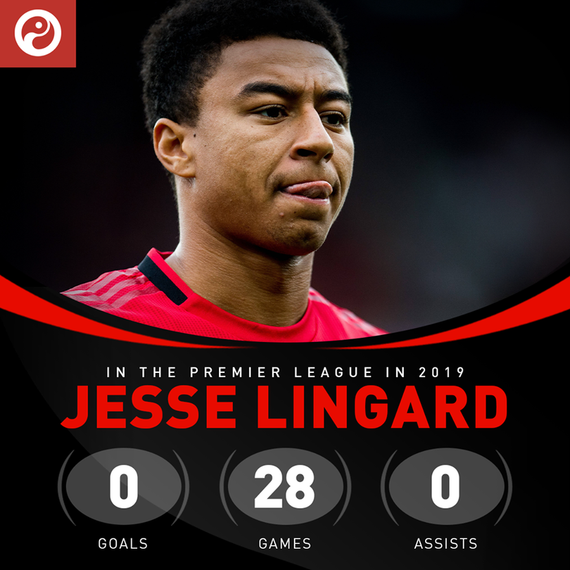 Đó là hình ảnh bao quát trong năm 2019 mà cầu thủ 27 tuổi này trải qua. Tổng cộng, Jesse Lingard có 28 lần ra sân tại Premier League trong năm 2019, nhưng thành tích lại rất đáng buồn: không bàn thắng, không kiến tạo.