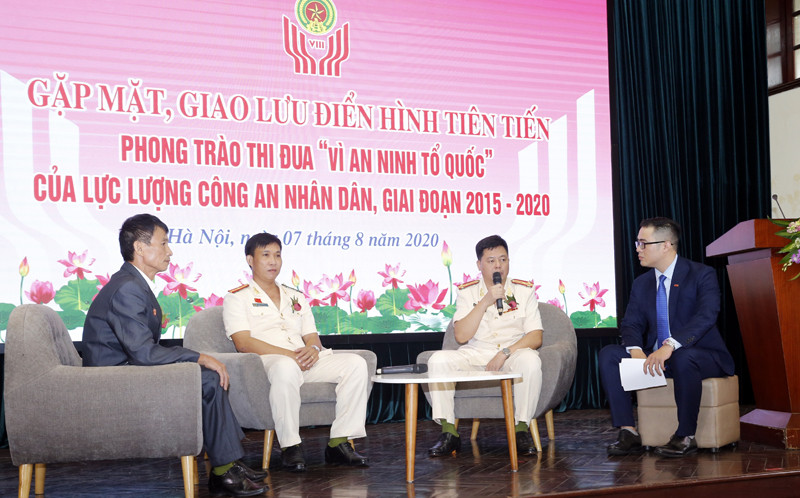 Tại buổi giao lưu, 7 đại biểu đại diện cho các điển hình tiên tiến trong các phong trào thi đua "Vì an ninh Tổ quốc" và "Toàn dân bảo vệ an ninh Tổ quốc" giai đoạn 2015-2020, đã chia sẻ những câu chuyện, kinh nghiệm cá nhân trong đấu tranh trấn áp tội phạm cũng như thi đua lập thành tích chào mừng 75 năm Ngày truyền thống CAND Việt Nam, 15 năm Ngày hội Toàn dân bảo vệ an ninh Tổ quốc, hướng tới chào mừng đại hội Đảng các cấp, tiến tới Đại hội toàn quốc lần thứ XIII của Đảng.