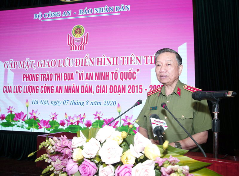 Phát biểu tại chương trình giao lưu, đồng chí Đại tướng Tô Lâm, Ủy viên Bộ Chính trị, Bộ trưởng Bộ Công an ghi nhận, đánh giá cao công tác phối hợp giữa Bộ Công an và Báo Nhân Dân trong tuyên truyền về công tác đấu tranh phòng, chống tội phạm, giữ gìn TTATXH và xây dựng lực lượng CAND trong sạch, vững mạnh; đồng thời lan tỏa hình ảnh các điển hình tiên tiến qua phong trào thi đua “Vì an ninh Tổ quốc” và phong trào “Toàn dân bảo vệ an ninh Tổ quốc” giai đoạn 2015-2020.