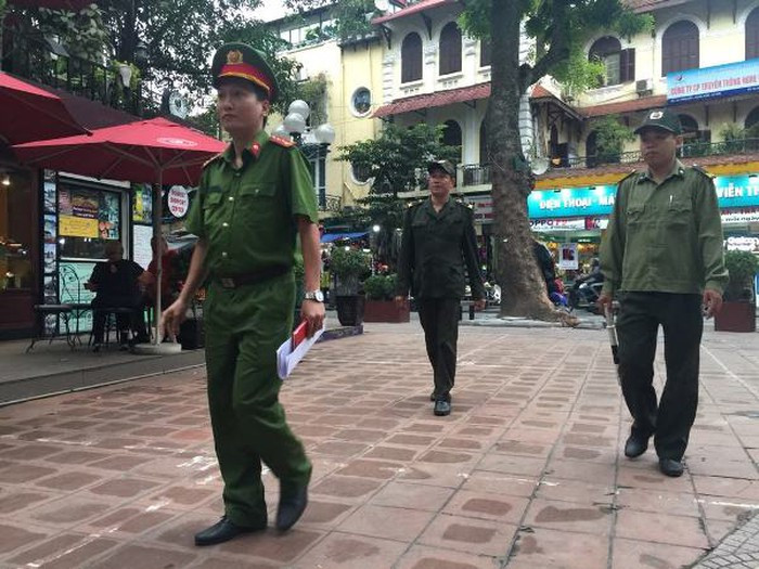 Lực lượng CSTT cùng bảo vệ dân phố thường xuyên tuần tra, nhắc nhở và kịp thời phát hiện những vi phạm về kinh doanh, vỉa hè, lòng đường để đảm bảo ANTT trên địa bàn