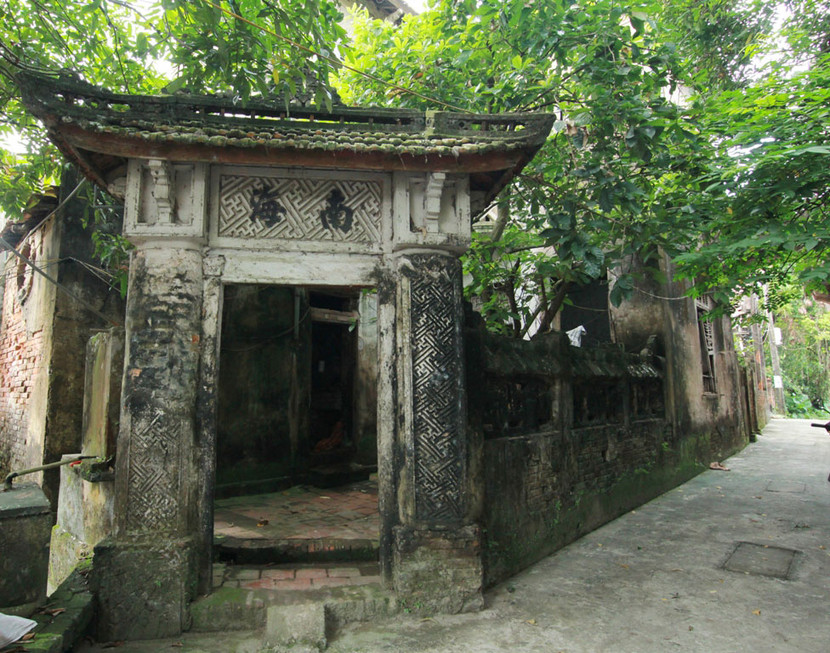 Cổng làng Cựu xây kiểu tam quan nhà chùa. Ảnh: Hồng Hạnh