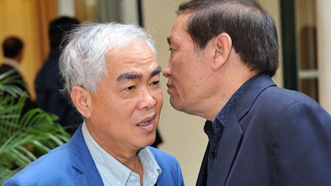 Chủ tịch VFF khóa VI Nguyễn Trọng Hỷ (phải) và người kế nhiệm Lê Hùng Dũng