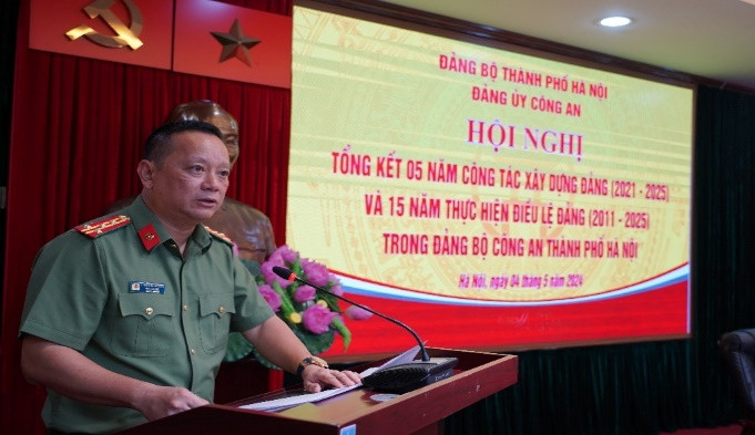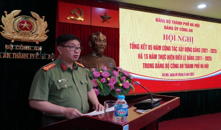 Đại tá Phạm Thanh Hùng, Phó Bí thư Đảng ủy, Phó Giám đốc CATP, phát biểu kết luận hội nghị