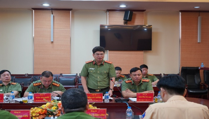 Đại tá Phạm Thanh Hùng, Phó Bí thư Đảng ủy, Phó Giám đốc CATP, chủ trì hội nghị.