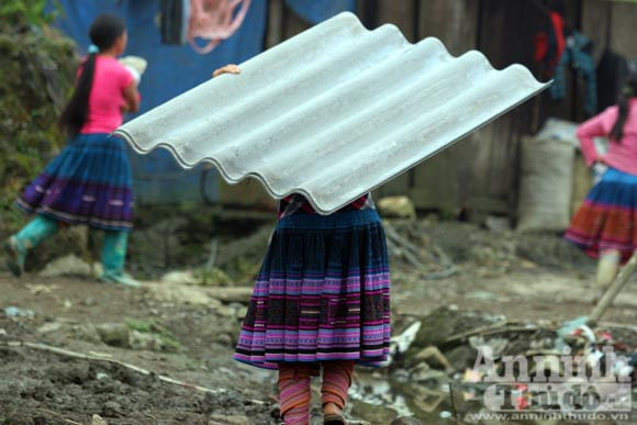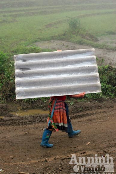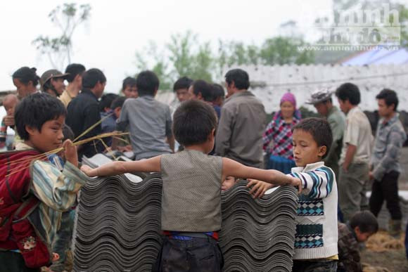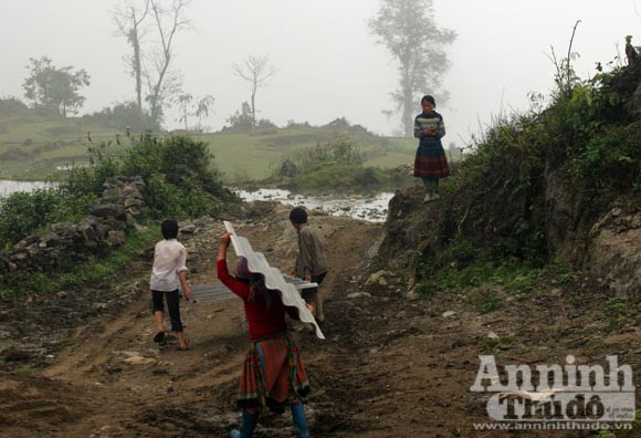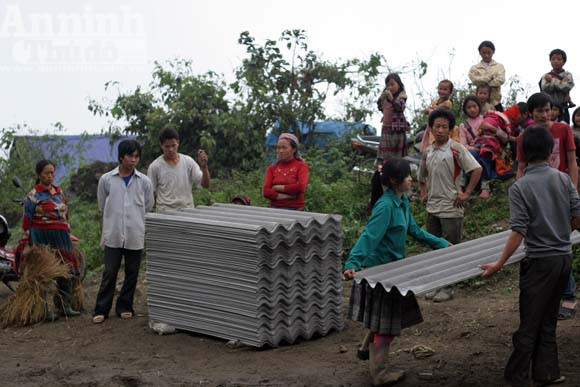 Vậy nhưng, cũng chỉ được mua theo diện “bao cấp” bởi trước mắt chưa đủ nên mỗi nhà chỉ được mua vài tấm lợp tạm thời chỗ giường ngủ trước đã, còn lại tính sau. Một xe ô tô cũng chỉ chở được vài trăm tấm lợp, chẳng thấm gì mà chia cho 44 nóc nhà trong bản, nhà nào cũng hư hỏng hết, nhưng để công bằng, ông trưởng bản Lù Sào Lìn đứng lên phân chia theo cách rất được lòng, nhà ai ít người tạm thời lấy ít, còn nhà ai đông người lấy nhiều hơn. Như thế, bà con bản Dê Chú Thàng cũng vui lắm rồi, bởi mấy ngày nay ở trong nhà mà như ngoài trời, nền nhà ướt sũng nước, nhóm lửa nấu cơm cũng còn khó nhọc.