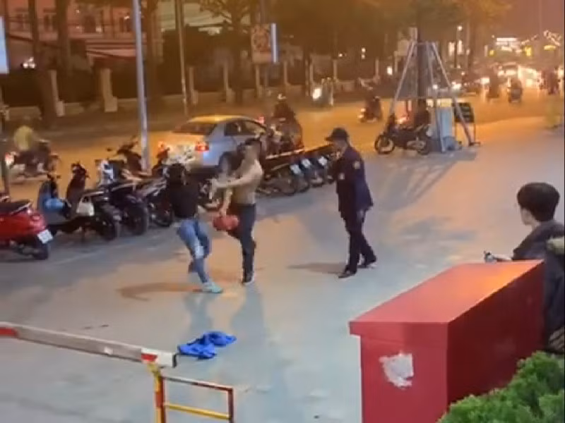 Nam bảo vệ đánh liên tục vào mặt người phụ nữ (Ảnh cắt từ clip)