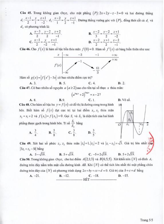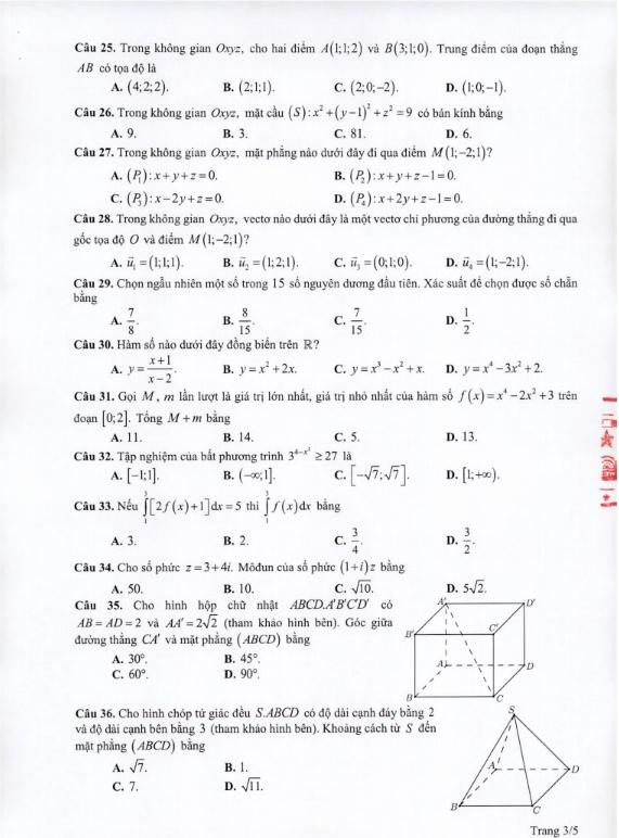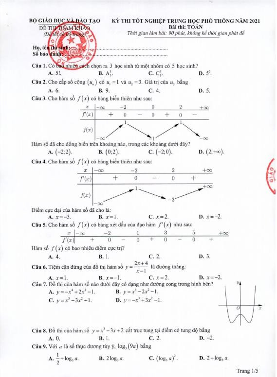 Đề thi môn Toán kỳ thi tốt nghiệp THPT năm 2021