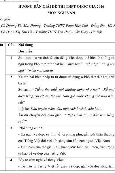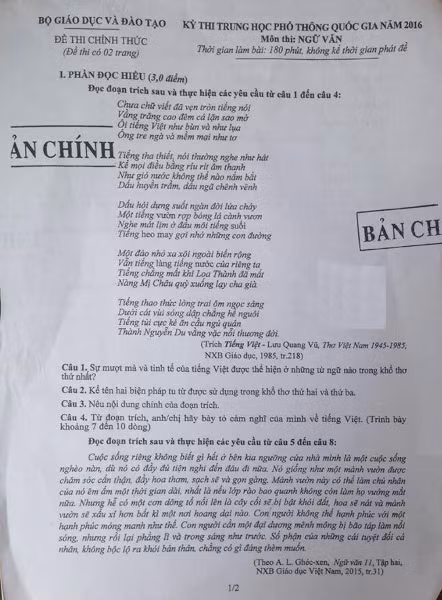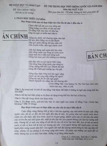 Dưới đây là đề thi và gợi ý lời giải môn Ngữ văn kỳ thi THPT quốc gia 2016: