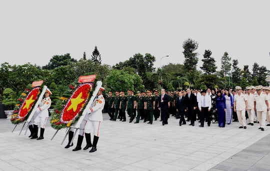 Đoàn đại biểu do Bí thư Thành ủy TP.HCM Nguyễn Thiện Nhân làm trưởng đoàn đến viếng Nghĩa trang liệt sĩ TP.HCM (Đồi không tên, quận 9) ngày 27-7-2018 (Ảnh:Báo Người lao động)
