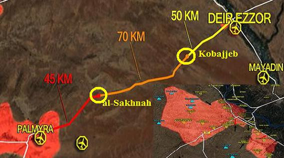 Giai đoạn 1, Quân đội Syria đánh dọc theo con đường cao tốc M20, giải phóng thị trấn al-Sakhnah, cách Palmyra khoảng 45km về phía đông; Giai đoạn 2, SAA tiếp tục vượt qua 70km đường quốc lộ để đánh chiếm thị trấn Kobajjeb; Giai đoạn 3 đánh chiếm nốt 50km nữa để sáp sát Căn cứ không quân Deir Ezzor.