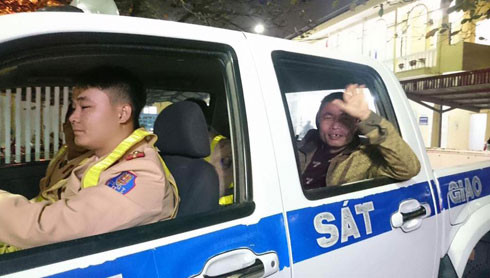 Anh Vụ được các đồng chí CSGT dùng xe chuyên dụng đưa về gia đình.