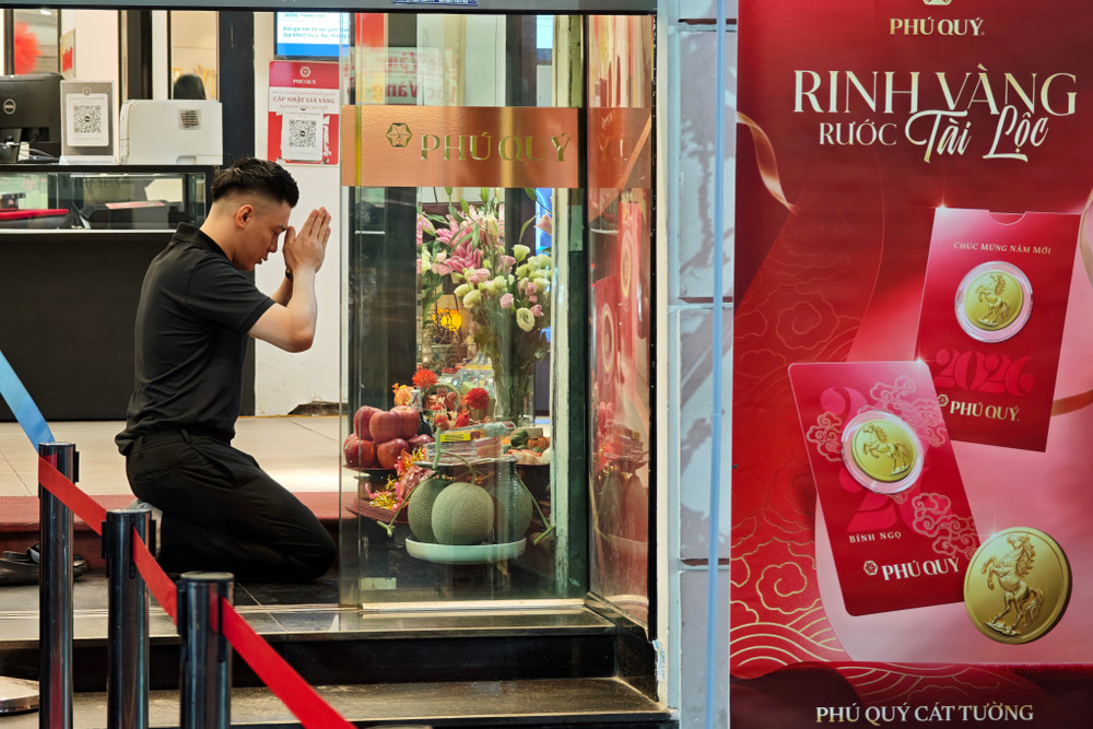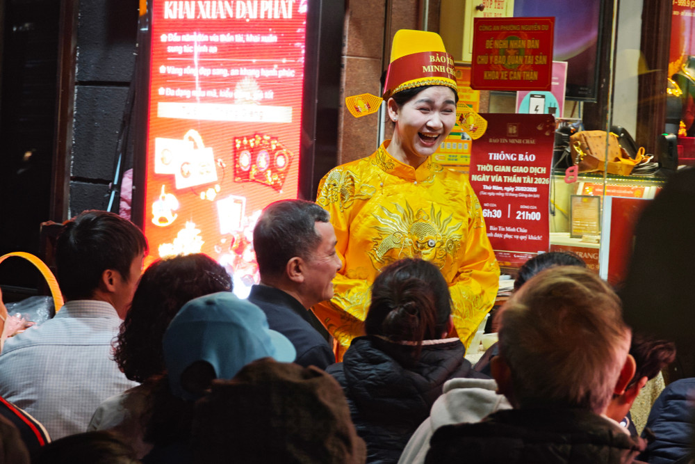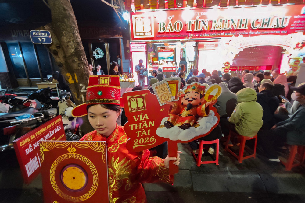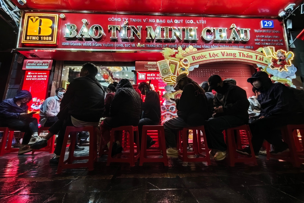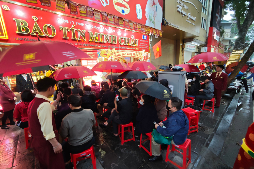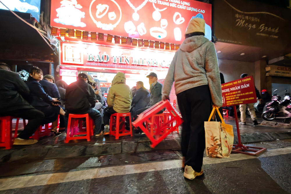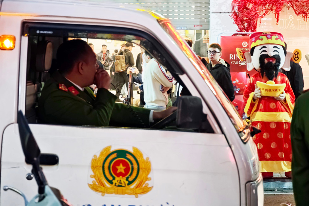 ANTD.VN - Để trở thành những người đầu tiên rước lộc trong ngày Vía Thần Tài (mùng 10 tháng Giêng năm Bính Ngọ), rất đông người dân Thủ đô đã thức trắng đêm, đội mưa xếp hàng trên "phố vàng" Trần Nhân Tông. Lực lượng Công an phường ứng trực đảm bảo an ninh trật tự phục vụ người dân.