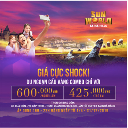 Chính thức áp dụng tới 31/12/2019, trong khung giờ từ 16h- 22h, combo này bao gồm xe bus đưa đón từ các điểm trung tâm trong nội thành Đà Nẵng lên đến khu du lịch, vé cáp treo, tham quan khu du lịch và 1 suất ăn buffet tại Beer Plaza.