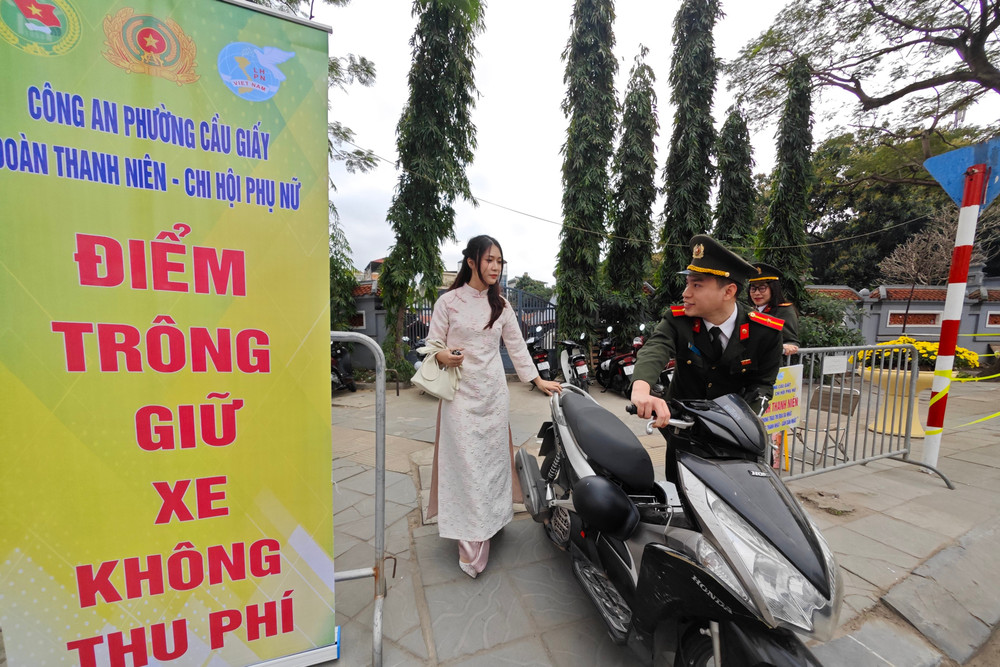 ANTD.VN - Trong những ngày đầu Xuân Bính Ngọ 2026, hàng ngàn người dân đổ về Chùa Hà (Hà Nội) để du Xuân, cầu bình an. Nhằm đảm bảo an ninh trật tự (ANTT) và giúp bà con yên tâm trẩy hội, Công an phưòng Cầu Giấy đã triển khai điểm trông giữ xe hoàn toàn miễn phí, đồng thời túc trực 24/24h để phân luồng, phòng chống tội phạm. Hình ảnh những chiến sĩ Công an tận tụy, thân thiện giữa sắc Xuân đã để lại ấn tượng sâu sắc trong lòng nhân dân và du khách thập phương.
