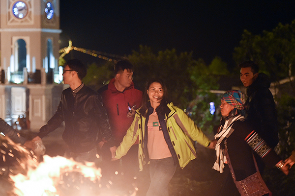 Các tối cuối tuần, đời sống vùng cao Tây Bắc được khắc họa sống động trong những đêm lửa trại trên đồi tam giác mạch. Lửa bập bùng, tiếng cười nói rộn ràng, những câu hát sum vầy vang lên giữa tiếng than hồng tí tách, mùi thơm của những món ăn Tây Bắc gọi mời… Không còn khoảng cách giữa khách với chủ, giữa người miền xuôi với kẻ miền ngược, tất cả nắm tay nhau vòng quanh lửa hồng, múa, hát, trò chuyện… Có những đôi trẻ lại thích tự tình, tâm sự trong không gian chòi gác trên đồi tam giác mạch ấy, mặc cho lửa sáng, quên cả những tiếng nói cười rôm rả xung quanh. Có đủ xôm tụ cho những ai thích ồn ào, đủ lãng mạn riêng tư cho những cặp đôi đến Fansipan Sa Pa suốt tuần lễ hội tam giác mạch.