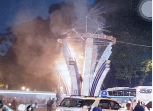 Ngay sau đó, người dân dùng bình chữa cháy mini chữa cháy tại chỗ nhưng bất thành do bên cột đèn trang trí chứa nhiều vật dụng dễ cháy nên ngọn lửa bùng phát nhanh.
