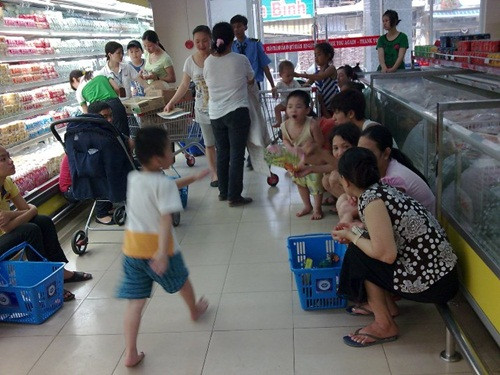 Nhiều người già, trẻ em, phụ nữ...tìm đến các TTTM, siêu thị trốn đợt nóng đầu hạ