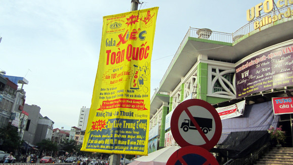 Theo quy định, mỗi chương trình nghệ thuật được phép treo 20 băng-rôn và 60 chiếc phướn, tuy nhiên, để bán được vé các đơn vị tổ chức thường treo quá số lượng, có khi lên tới cả nghìn. Lần nào “được” Thanh tra gọi lên nộp phạt các công ty tổ chức nghệ thuật đều nghiêm chỉnh chấp hành, gãi đầu gãi tai trình bày hoàn cảnh, nào là “em trót”, “em nhỡ”, “cho em nộp phạt”, bởi số tiền phạt cho việc treo băng-rôn quảng cáo quá quy định thường dừng ở mức 10 triệu, cao nhất là 30 triệu đồng. Nhưng rồi vòng quay tiếp tục được vận hành như công thức: Thanh tra phát hiện cho cắt băng rôn, gọi đến xử phạt, nộp phạt xong, hôm sau lại ngang nhiên… treo tiếp.