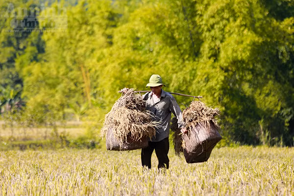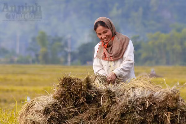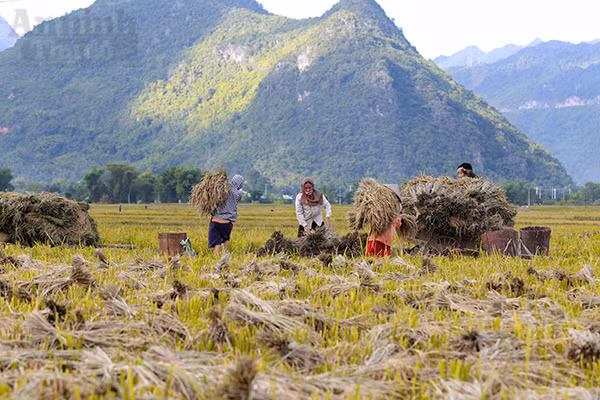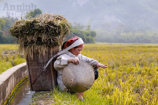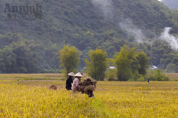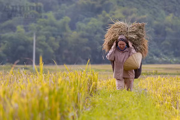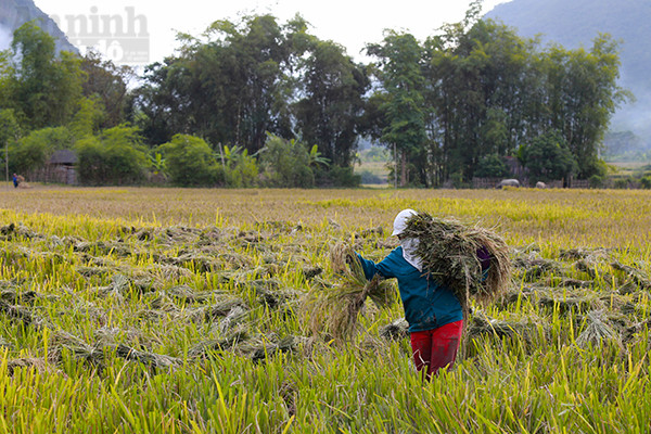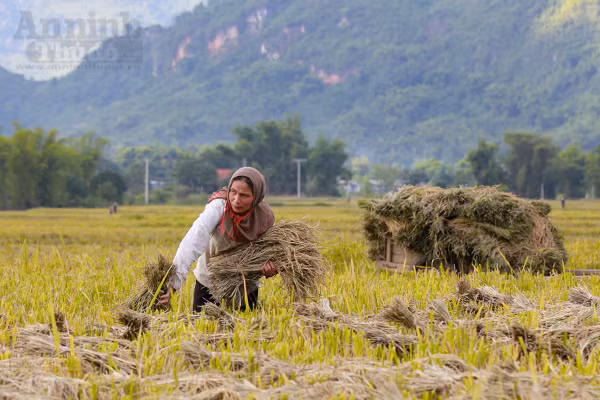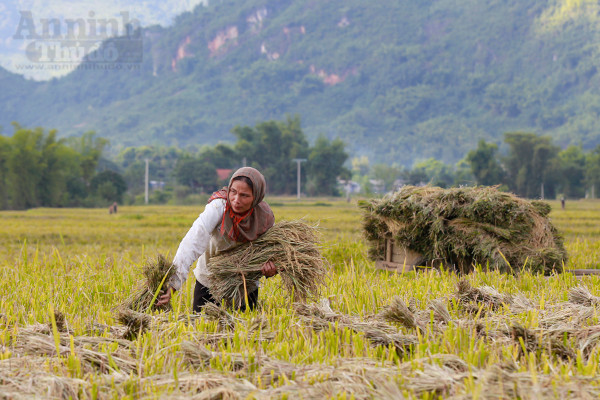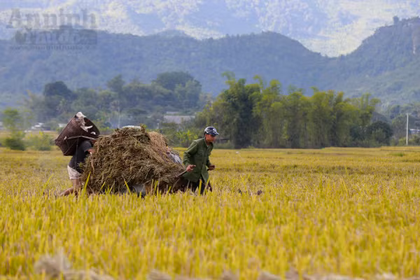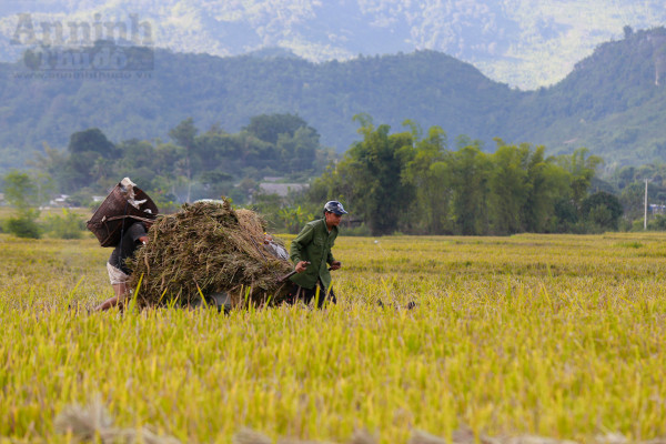Đi sâu vào các bản chúng ta dễ dàng trông thấy hình ảnh những người nông dân đang gùi lúa đi giữa cánh đồng.