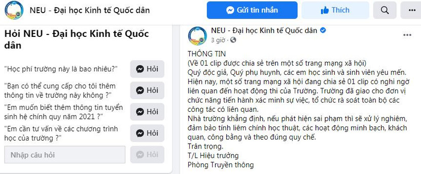 Trước thắc mắc về tính xác thực của thông tin này, ĐH Kinh tế quốc dân đã ngay lập tức có phản hồi.