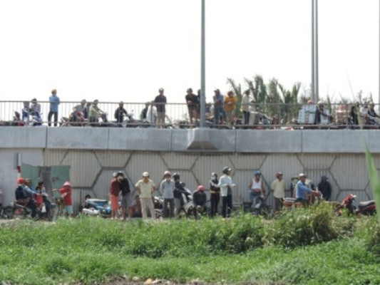 Đến khoảng 16h30 chiều cùng ngày, thi thể nạn nhân được đưa ra khỏi hiện trường phục vụ công tác điều tra. Rất đông người dân hiếu kỳ tụ tập trên cầu chứng kiến sự việc.