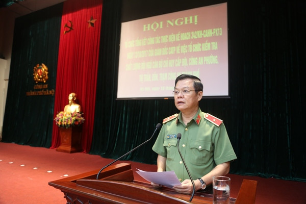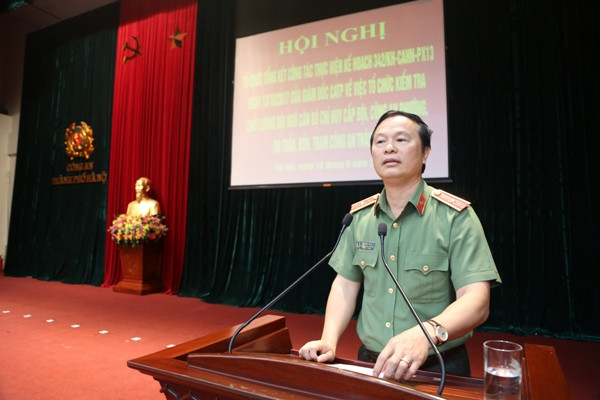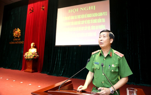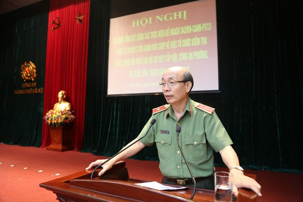 Thiếu tướng Đào Thanh Hải, Phó Giám đốc CATP Hà Nội báo cáo kết quả công tác kiểm tra, đánh giá trình độ của chỉ huy CAP, Đồn, Trạm, Thị trấn...